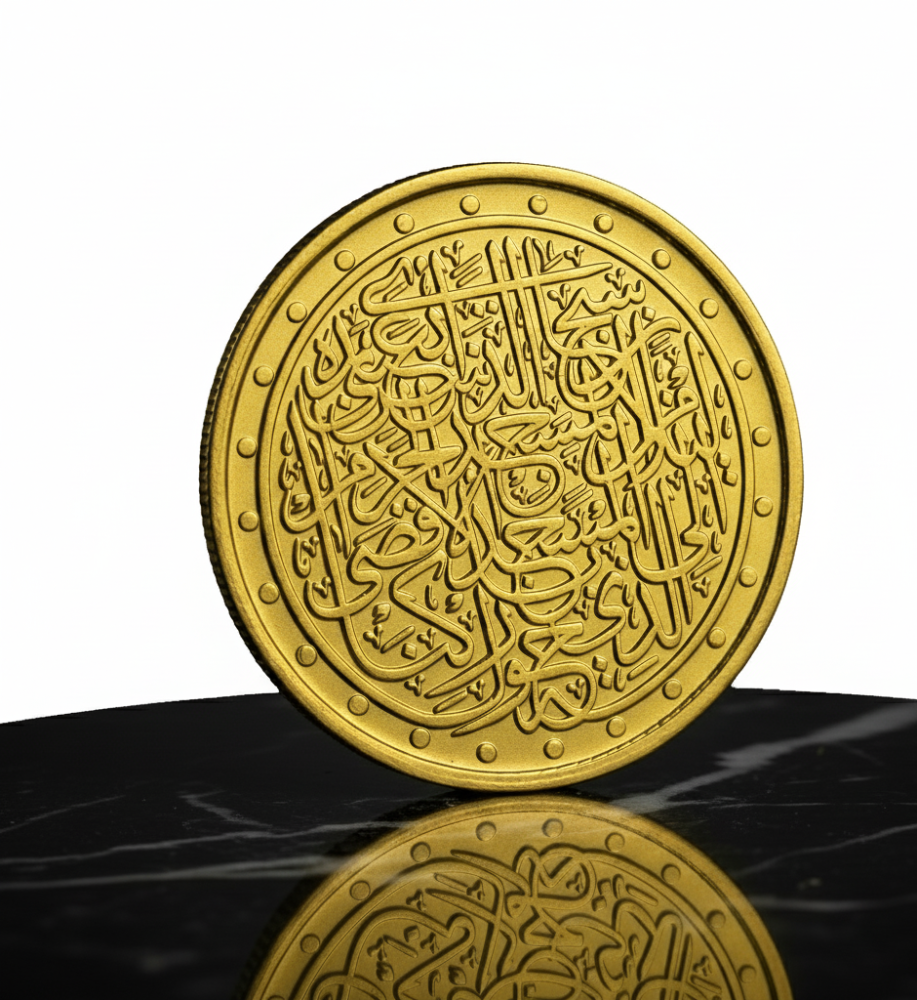 " Diwan Al-Dhahab" offers 999 purity gold coin In different weights 31.1 grams and 10 grams and 5 grams comes in a circular design that exudes luxury and spiritual beauty.